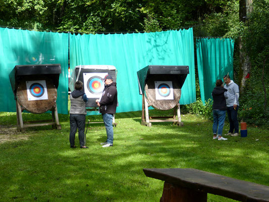 Für die Bogenschützen steht ein überdachter 40 m Schießplatz zur Verfügung, auf dem auch die 18 m Hallenentfernung geschossen werden kann.